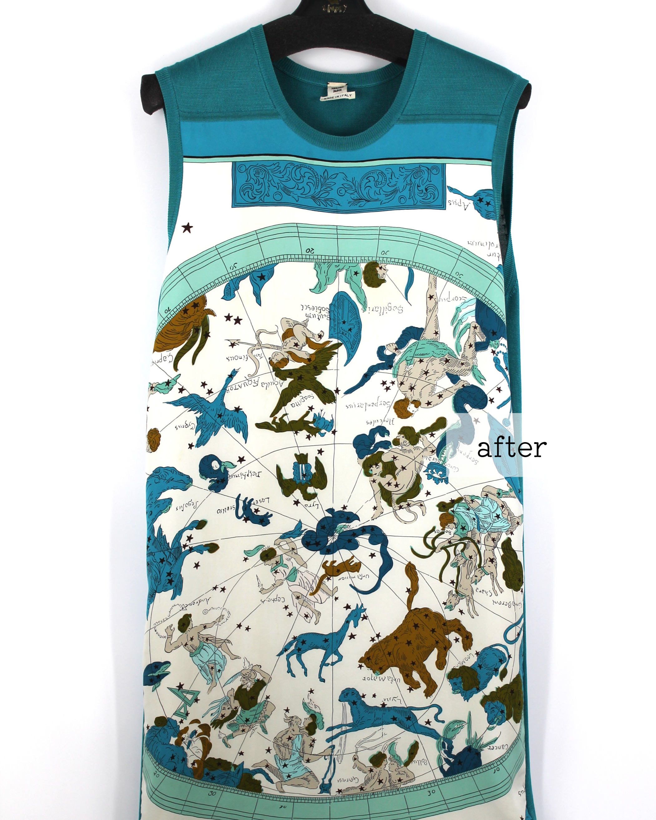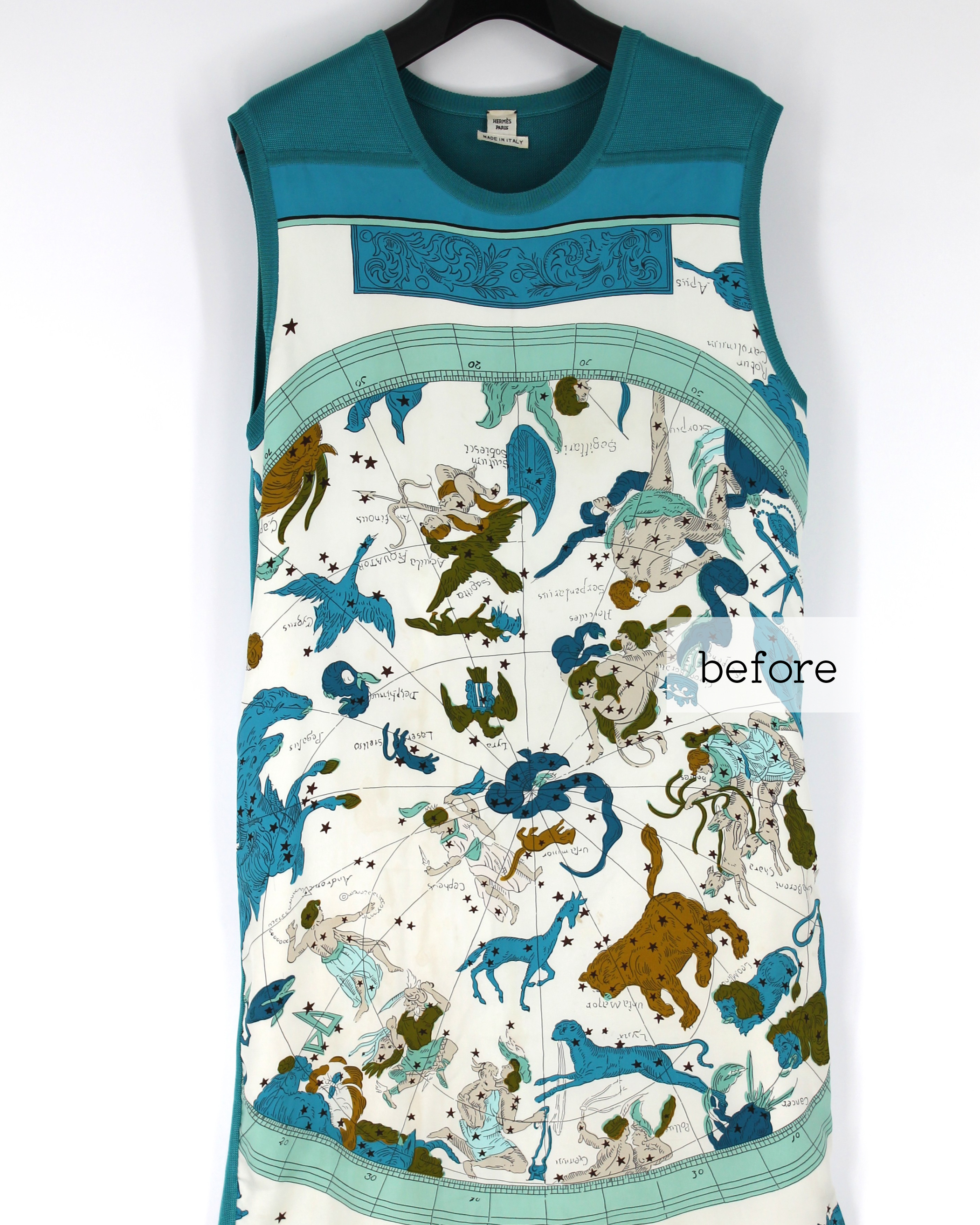前身頃にシルクプリント素材が使われたニットワンピースをお預かりしました。