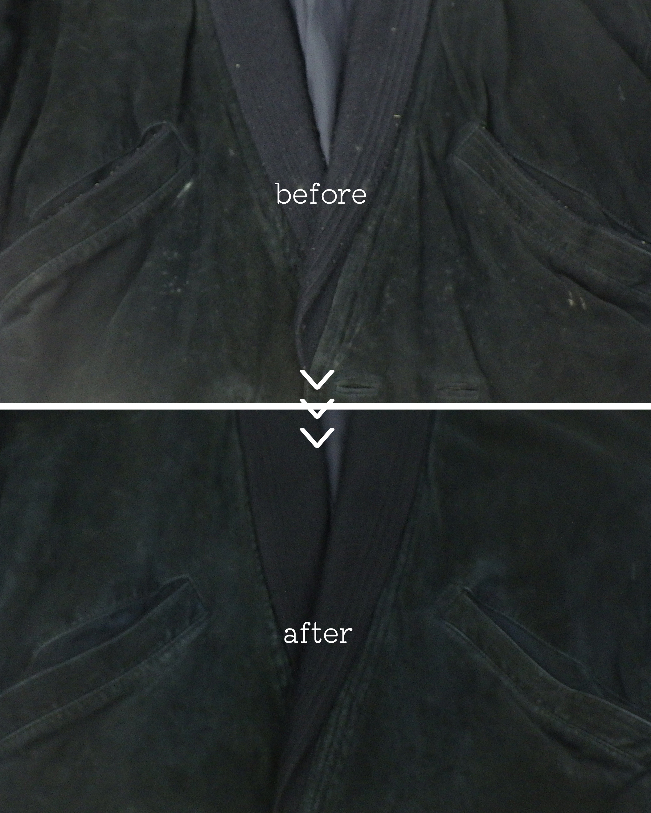 包み込むようなコクーンシルエットと、とても柔らかく可愛らしいファブリックが特徴的なアイテムですが、長年の着用とドライクリーニングを繰り返すことで、風合いがゴワゴワ・パサパサしてきたり、薄汚れてきたりして、「見た目も着心地も悪くなってきたから何とかして!」というご相談をよくいただきます。