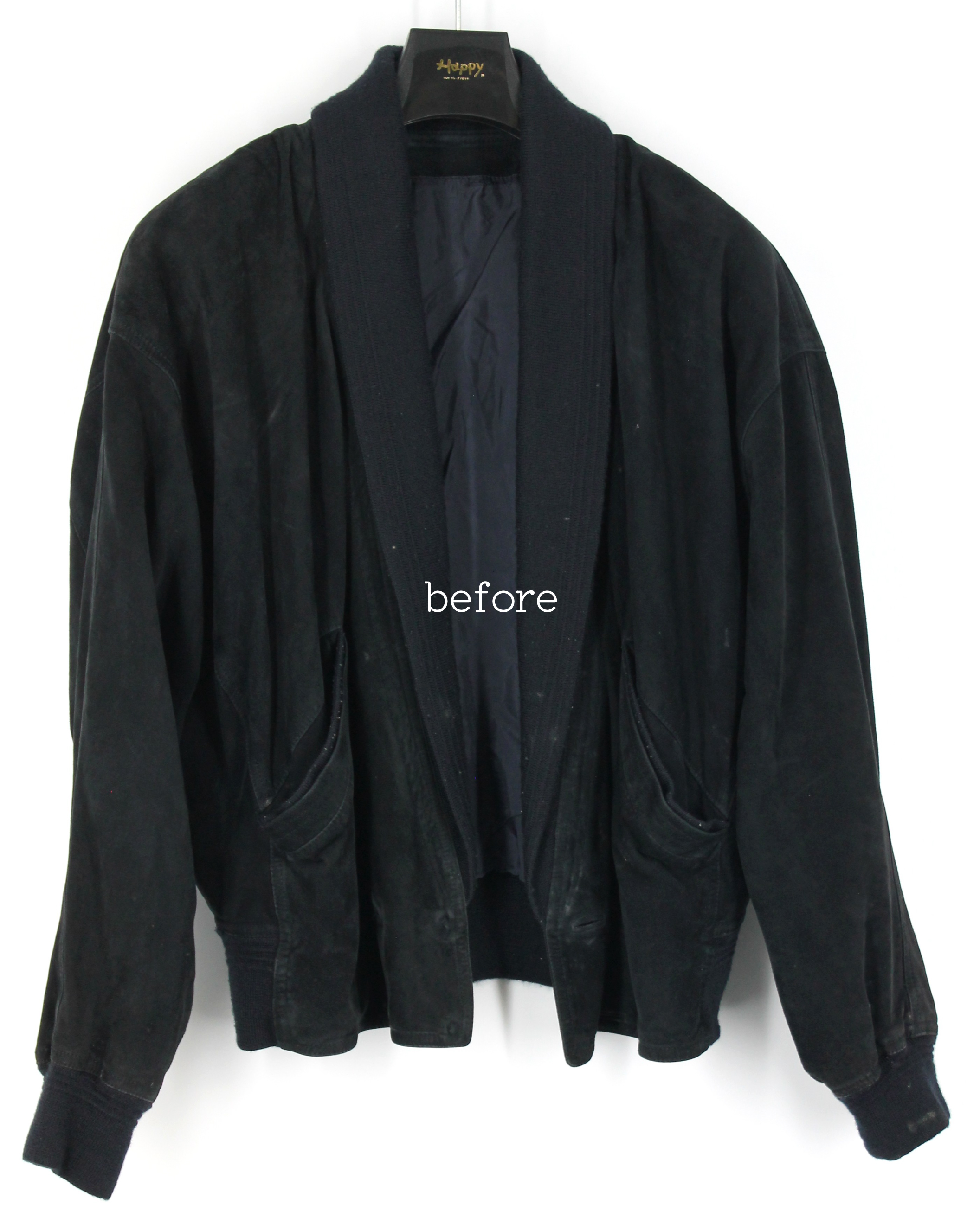 魅力的なジャンパーだからこそ、全体的なレザーの銀面剥がれや色落ちを修復・再生して本来の姿に戻して差し上げたい。
