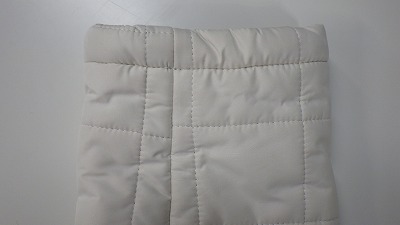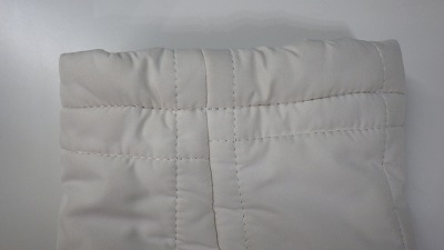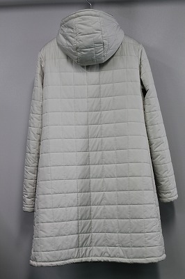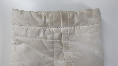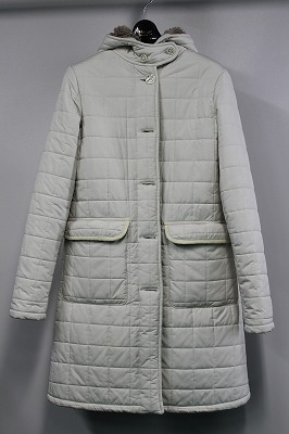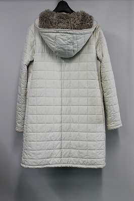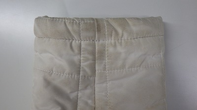キルティングの中綿コートです。表が白い生地のため全体の黒ずみやシミ汚れが目立った状態でした。ハッピー独自の水洗い技術とリプロンによる再生技術で、黒ずみやシミ汚れが除去され元の白さが蘇り、次シーズンも気持ちよく着用いただけます。