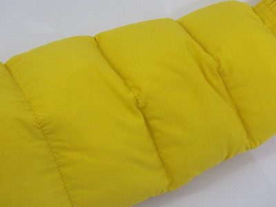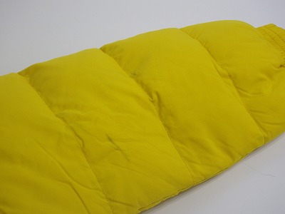 全体と特に袖口や袖に黒ずんでいましたが、リプロン「シミ汚れ落し」で全体にベールを脱ぐかのように、スッキリと元の明るい黄色が復元できました。ふっくら感もバッチリです。