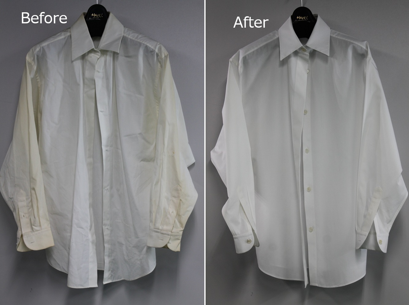 ドライクリーニングに出しても、ご自宅でお洗濯していても、繊維に汚れ成分は残ったままになっているので、その汚れ成分が徐々に酸化して後から必ずと言っていいほど黄ばんできてしまいます。