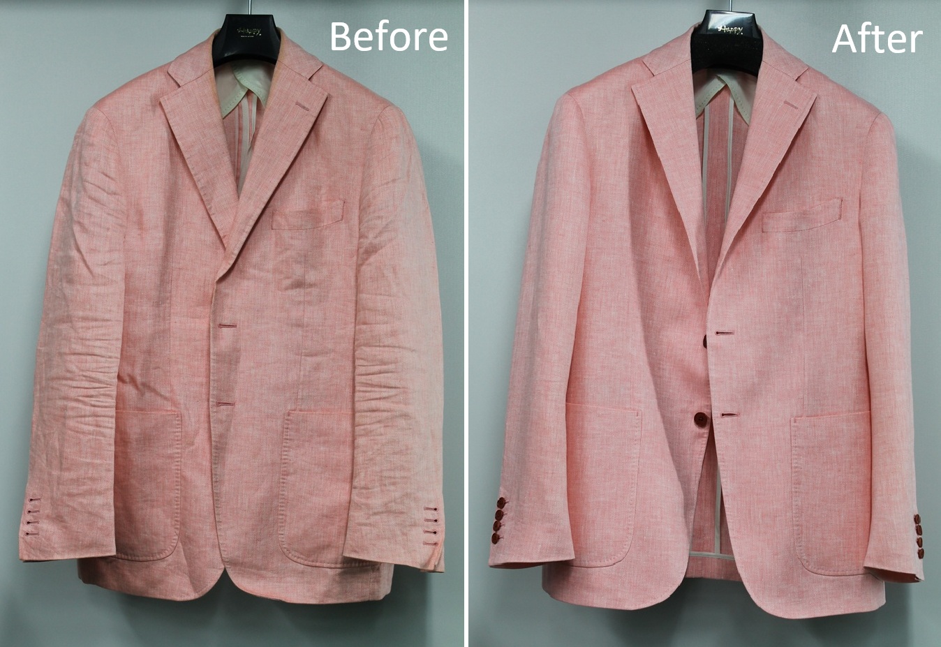 そんな麻ジャケットでも、当社ハッピーの無重力バランス洗浄による水洗いやリプロン技術で汚れや黄ばみ・汗ジミをしっかり除去し、独自のプレス技術でシルエットもキレイに再生できますので、気兼ねなく着用をお楽しみください!