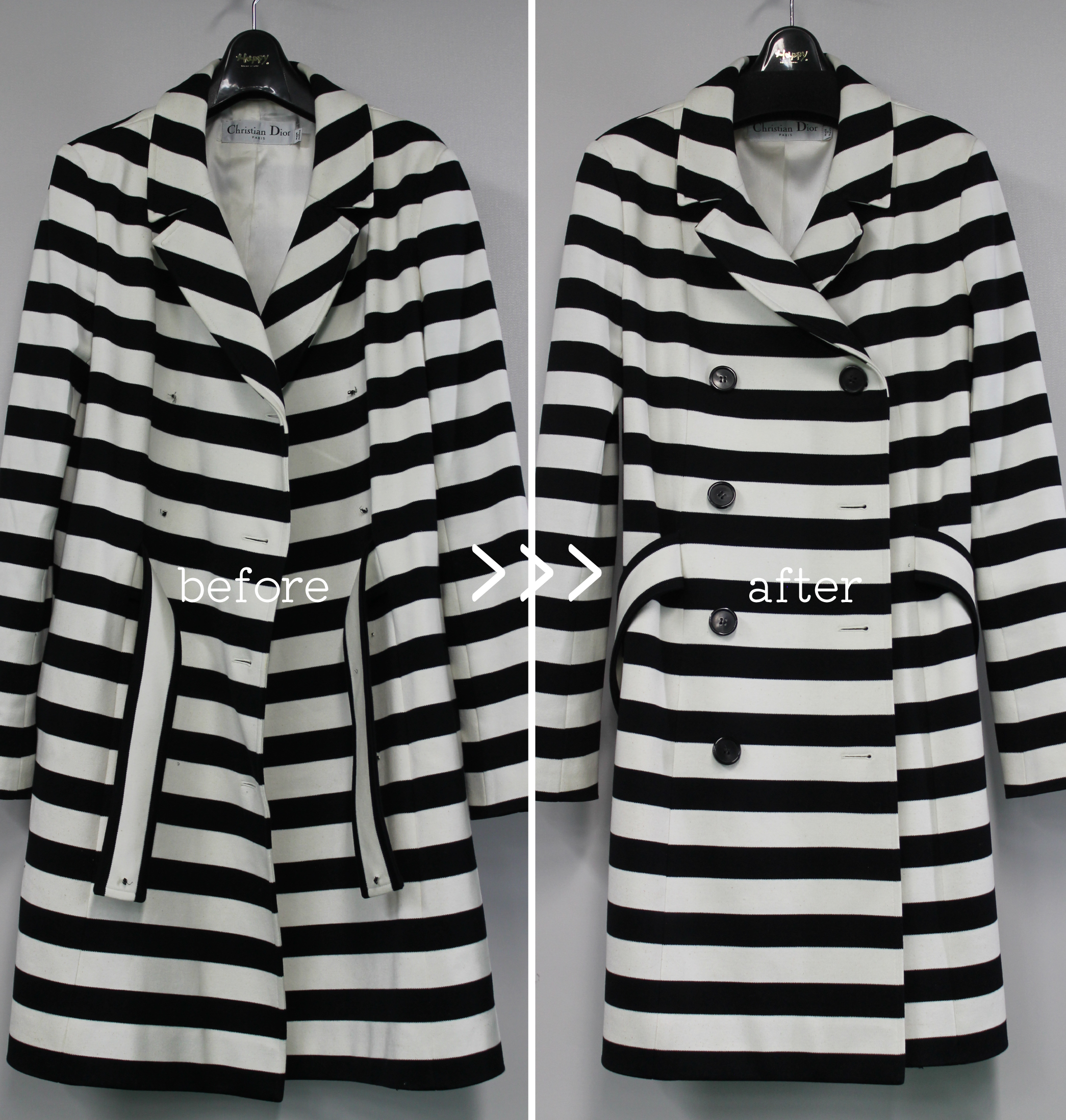 包み込むようなコクーンシルエットと、とても柔らかく可愛らしいファブリックが特徴的なアイテムですが、長年の着用とドライクリーニングを繰り返すことで、風合いがゴワゴワ・パサパサしてきたり、薄汚れてきたりして、「見た目も着心地も悪くなってきたから何とかして!」というご相談をよくいただきます。